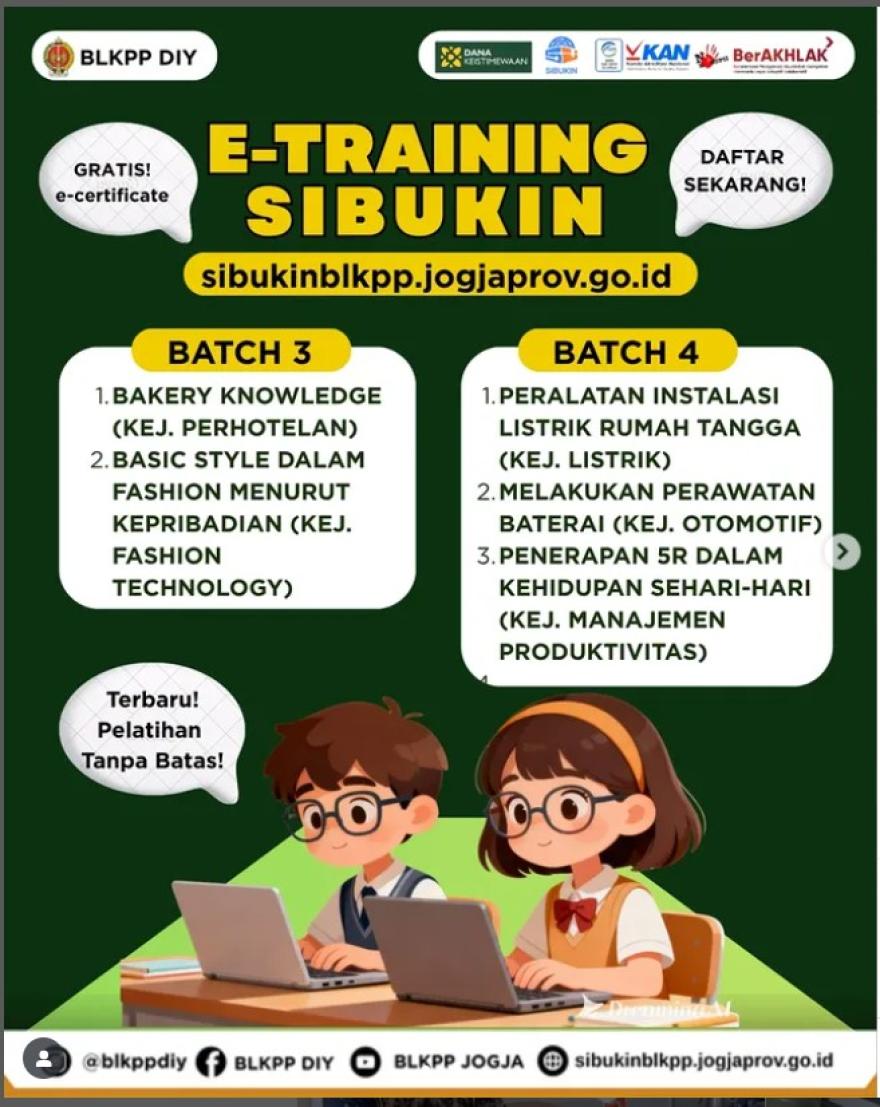 PENDAFTARAN E-TRAINING SIBUKIN BLKPP DIY Batch III dan IV