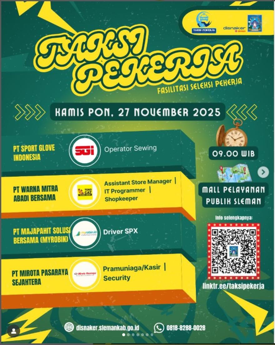 Tempat: Lantai 2, Mall Pelayanan Publik (MPP) Sleman