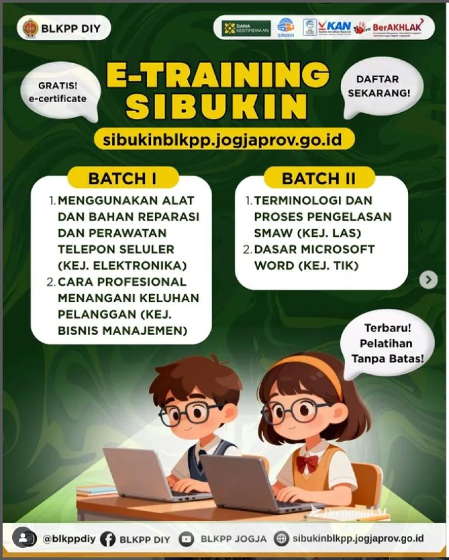 PENDAFTARAN E-TRAINING SIBUKIN BLKPP DIY Batch I dan II